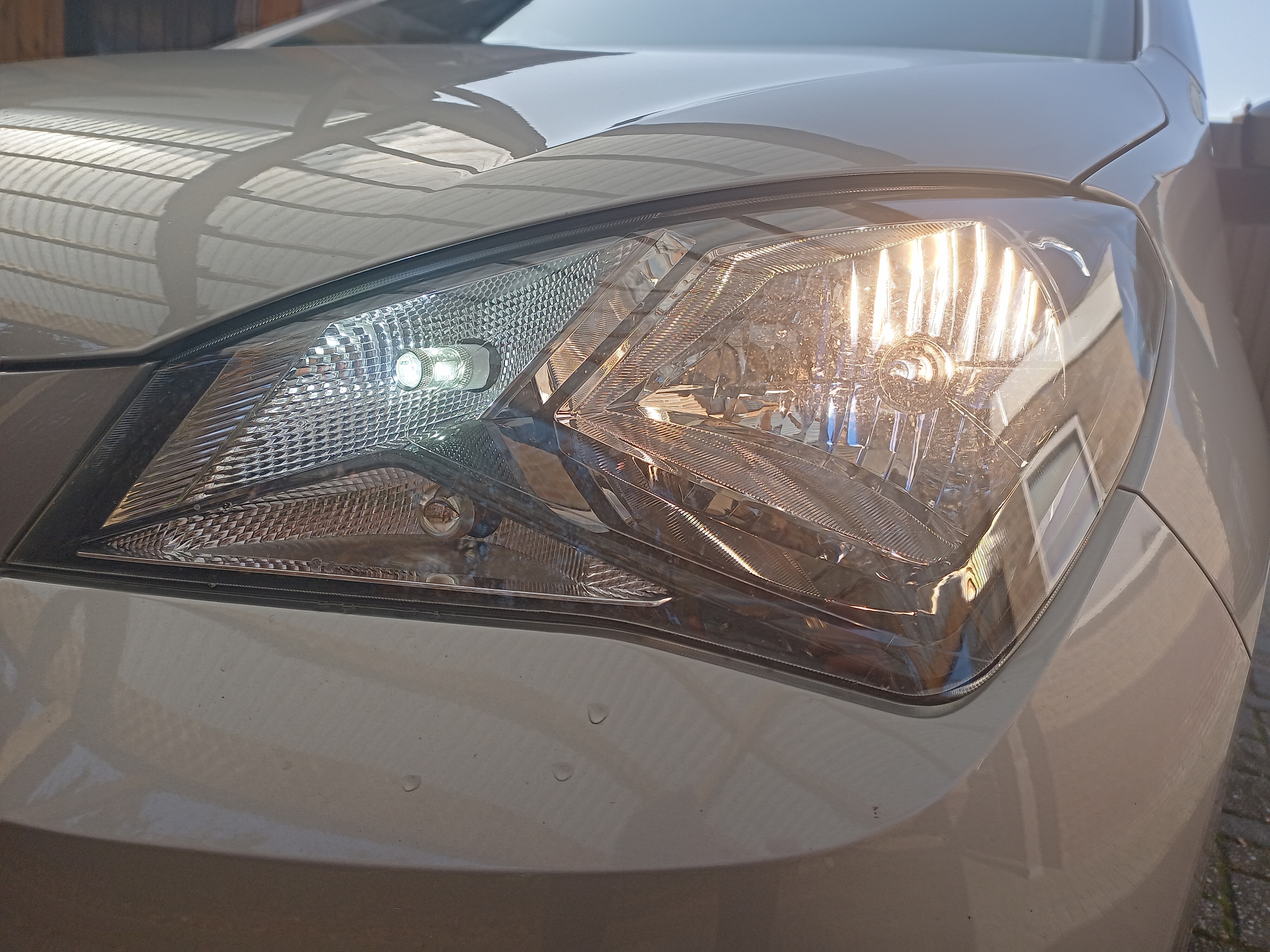 Hier de LED DRL in werking met verlichting uit en ingeschakeld