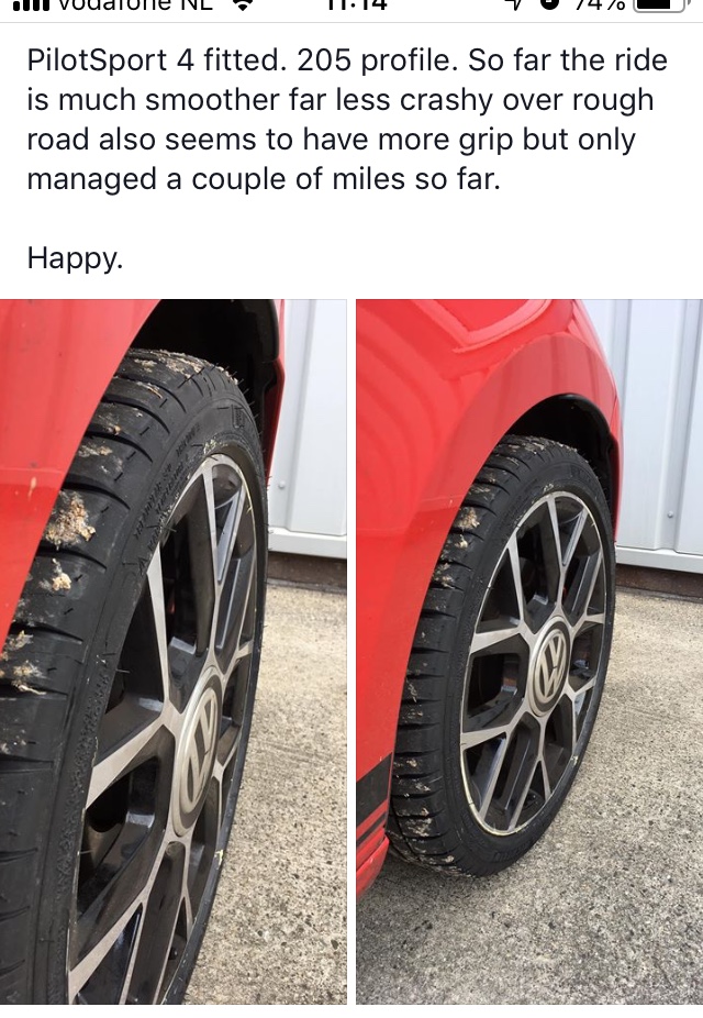 Snelheidscodering Q (160km/h) op een GTI.... Af en toe moet er echt even wat beter nagedacht worden, zulke dingen kunnen verkeerd uitpakkenEmiel25 schreef: ↑za 02 feb 2019, 19:43Een veel voorkomende klacht over de Up GTI is de stugheid van de auto (o.a. door r17/195/40 banden) en de slechte conti’s. Op de Engelse facebook zie ik iemand die er 17 inch op heeft liggen met een wang van 45. Dat kan blijkbaar. Dat wil ik ook wel doen, maar kan dat zo maar? Waar loop ik mogelijk tegenaan? Wat vinden jullie?