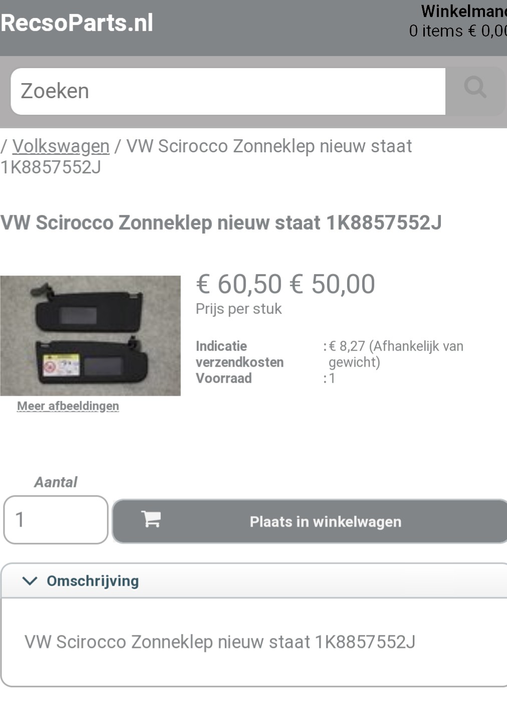 Vind ze ook wel maar alleen met bekabeling voor schakelaar cq verlichting.NidayFright schreef: ↑ma 24 aug 2020, 20:53Vond het ook al vreemdZijn er genoeg te vinden via google. Scirocco zonnekleppen zijn idem, kan je ook nog inkloppen. Nog geen 10 seconden