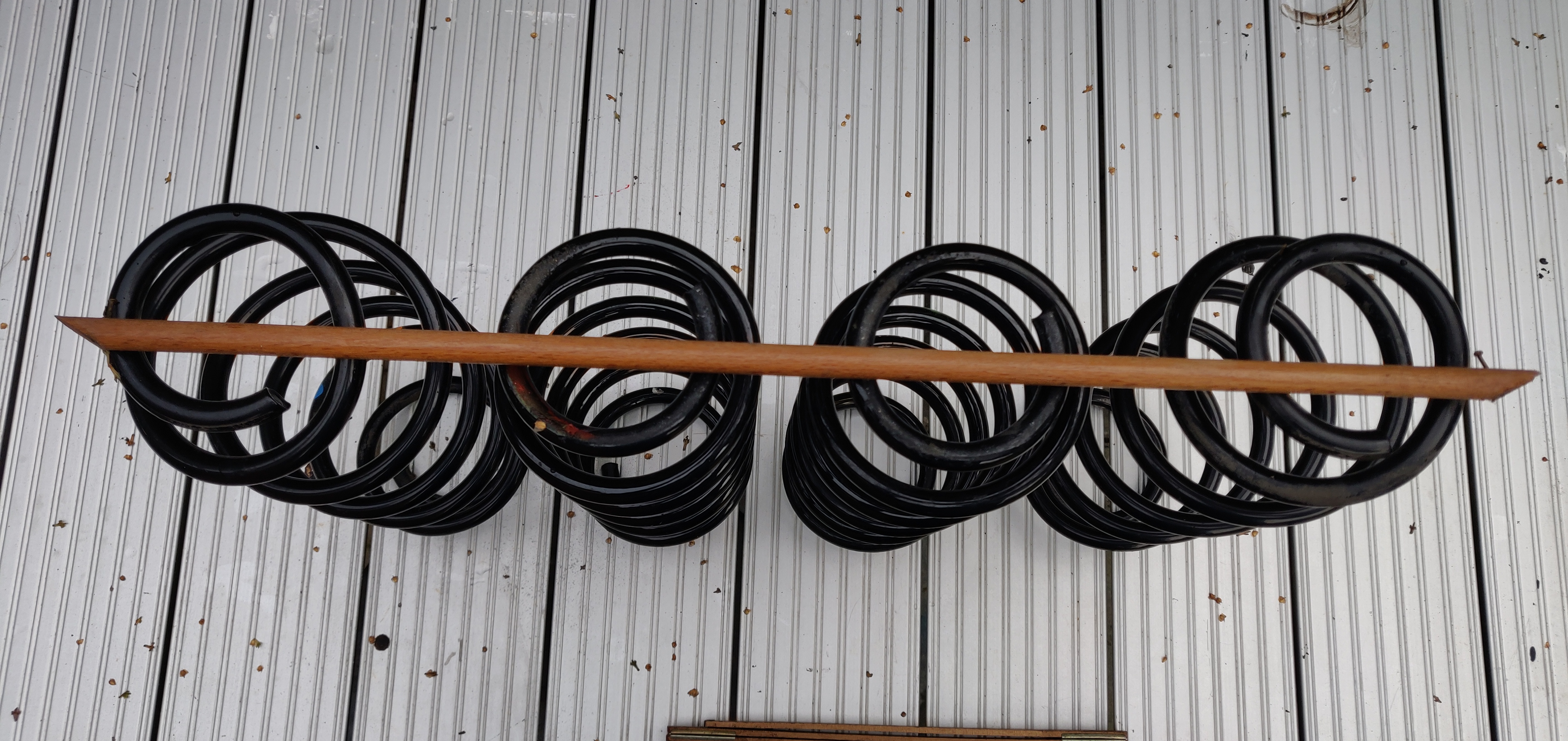 Ik wil de achterveren van de Eibach Pro Set van de MPI onder de GTI zetten, en de standaardveren van de GTI onder de MPI. Dan moeten er wel de lagere veerrubbers onder, bij beide auto's. Die heb ik besteld. Dempers blijven nog even waar ze zitten...