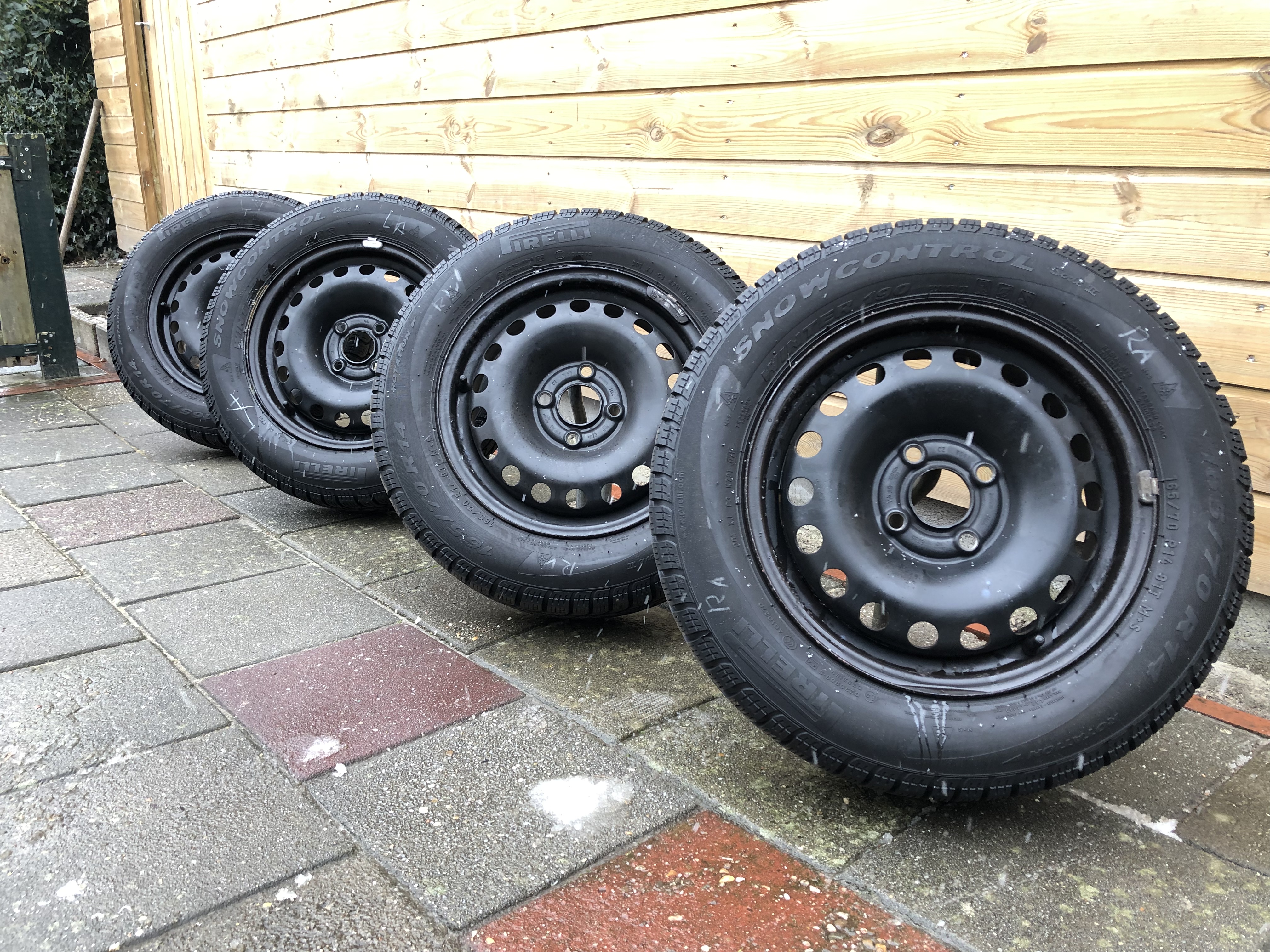 Te koop; 4 originele stalen VW velgen met pirelli winterbanden.