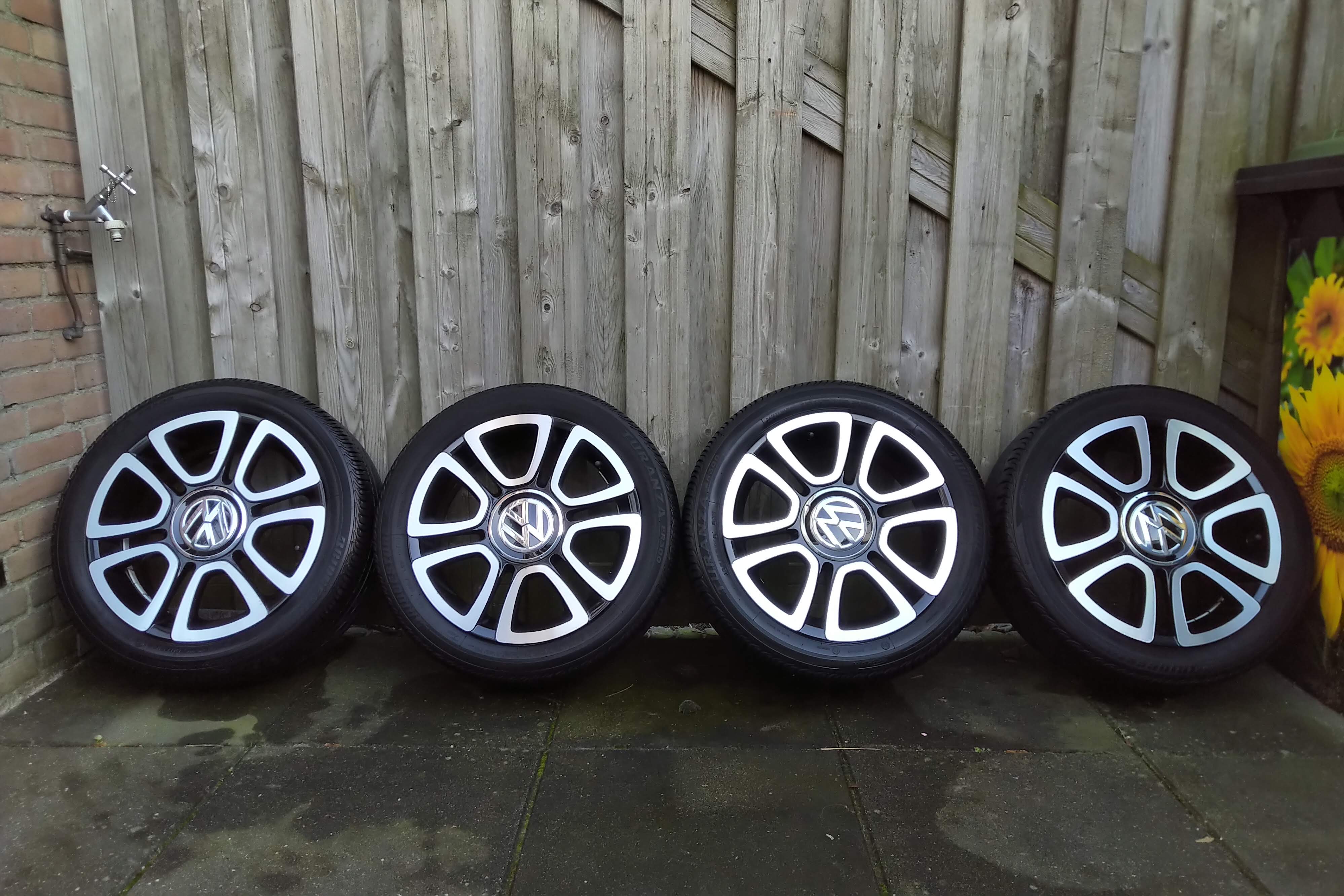Hallo, ben op zoek naar een originele vw set Setje lichtmetaal 16 of 17 inch met banden.