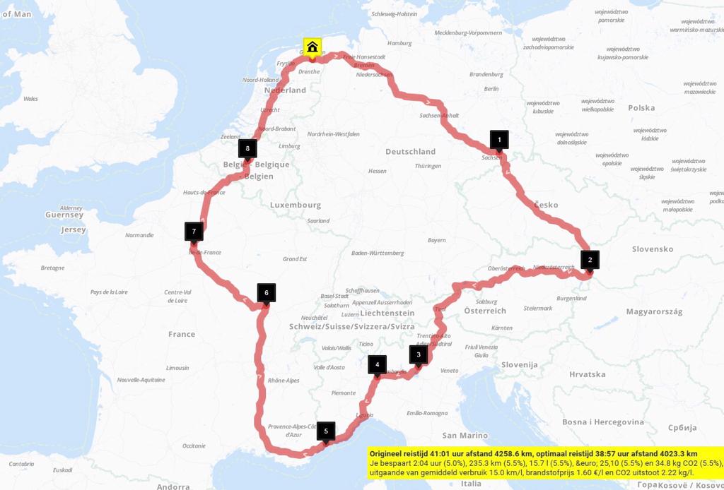 In onderstaand overzicht de route die wij afgelopen zomer met de GTI hebben afgelegd.