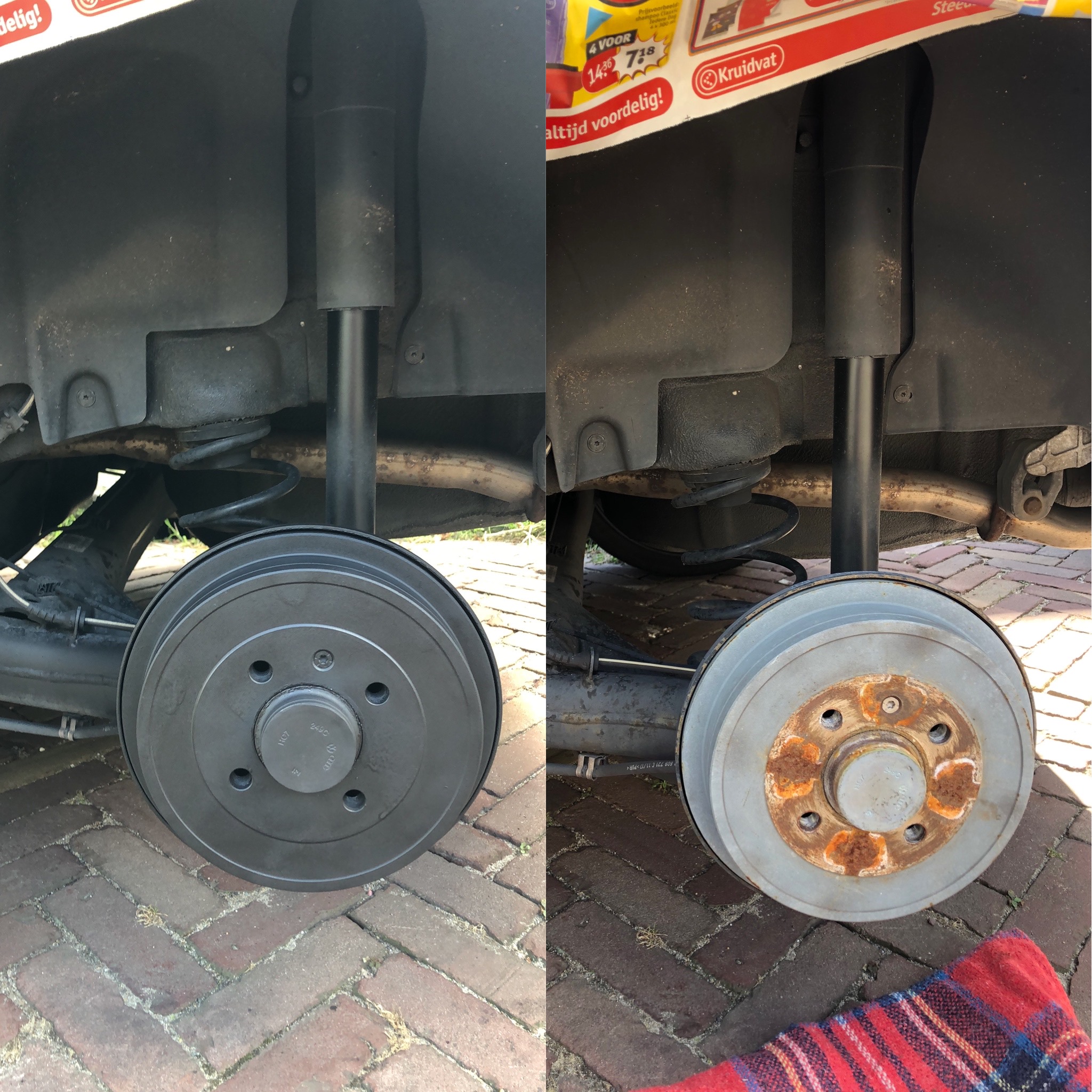 heel gaafJason95 schreef: ↑zo 06 sep 2020, 15:20Vandaag de matten voor de veiligheid hesjes onder de voorstoelen bevestigd, trommel remmen zwart gespoten en de velgen ontdaan van al het remstof.
