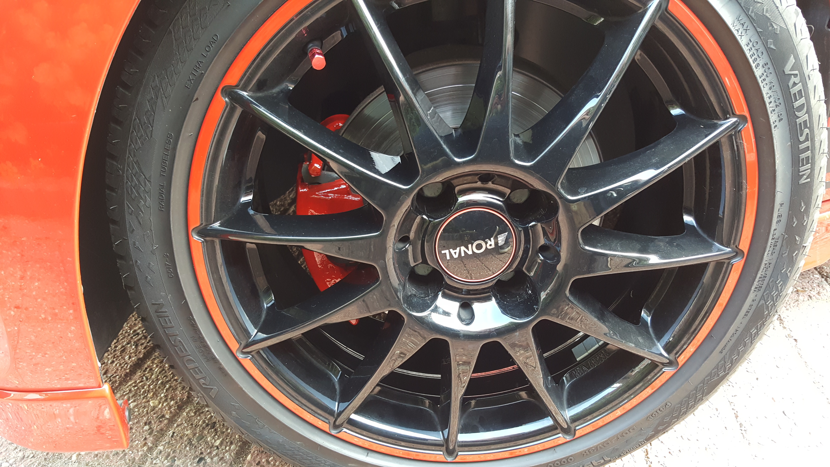 Ik zat al een tijdje met het idee om de remklauwen een mooi kleurtje te geven, begin augustus heb ik een setje hiervoor gehaald waar alles in zit. Handschoenen, remmenreiniger, staalborstel en natuurlijk de verf. Sindsdien was het zoeken naar een moment dat ik het ook kon uitvoeren, toevallig had ik afgelopen vrijdag vrij. Dus donderdagavond de Up! op poten gezet en de wielen eraf gehaald. De volgende morgen de klauwen schoongemaakt en geverfd. Vervolgens 's middags de achterkant omhoog gehaald om de remtrommels zwart te spuiten. Tevens heb ik de wielkasten, velgen en remmen schoongemaakt. Zaterdag de remtrommels gespoten en alles weer op de auto gedraait.